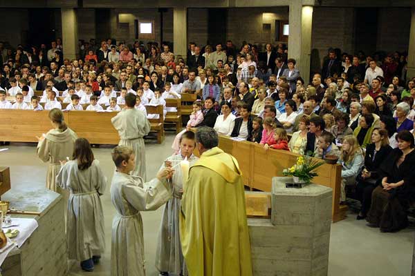 U nedjelju u crkvi sve.Križa u Bernu proslavljena je podjela Prve svete Pričesti. Učestovalo je dvadesetšest djevojčica i dvadesetšest dječaka. Misno slavlje je predvodio voditelj Hrvatske katoličke misije u Bernu fra. Gojko Zovko...