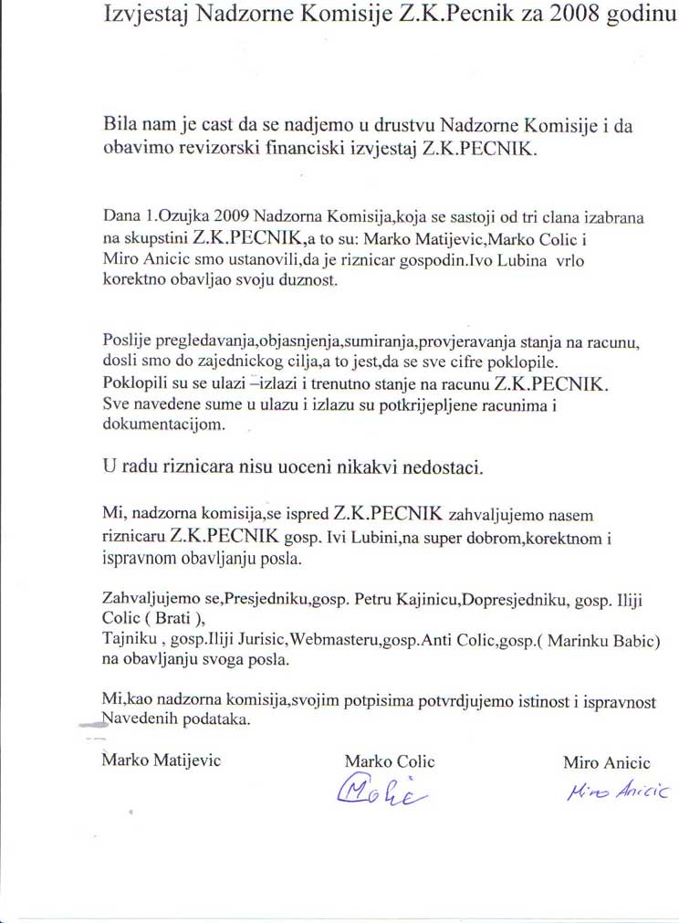 Izviješće nadzorne komisije Z.K."Pećnik"možete pogledati OVDJE