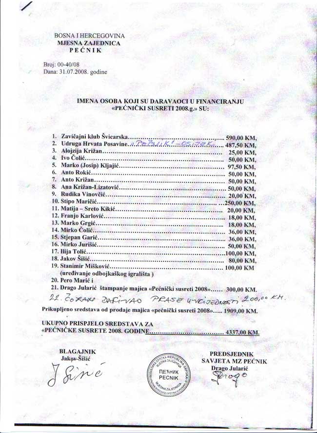 IMENA OSOBA KOJI SU DARAVAOCI U FINANCIRANJU"PEĆNIĆKI SUSRETI 2008 GODINE"