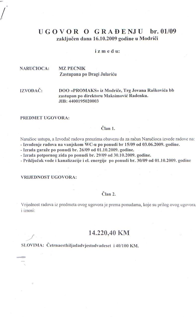 Ugovor o izvođenju radova, strana 1 OVDJE
